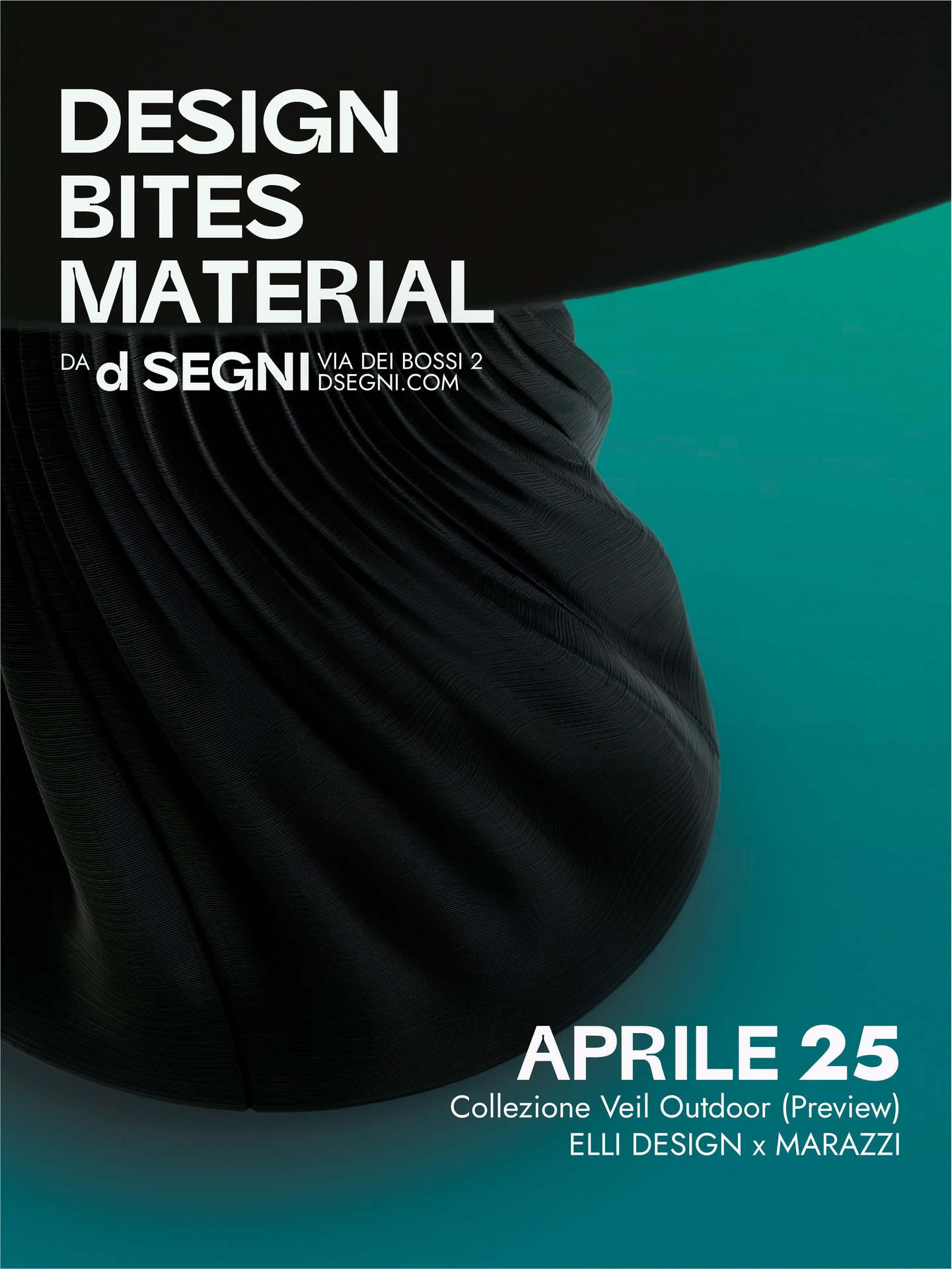 A world preview of the Veil Outdoor Collection by Elli Design, developed in dialogue with an exclusive surface by Marazzi. Produced through additive manufacturing using high-performance recycled polymers, Veil transforms lightness into sculptural, welcoming form — proposing a new vision of outdoor space as a regenerative design ecosystem.