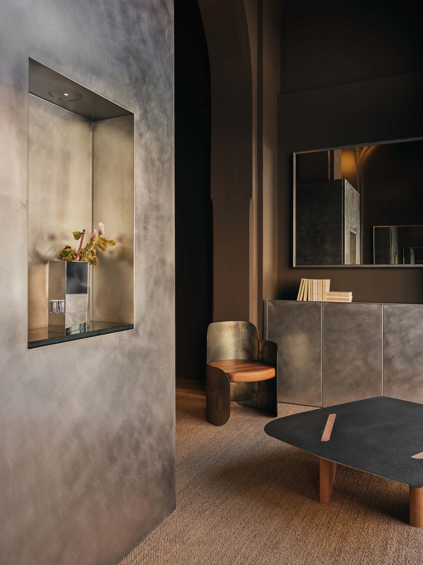 Galleria espositiva della collezione di oggetti e arredi e dei lavori custom del brand di manifattura metalli, Mingardo