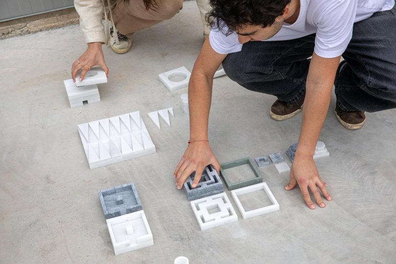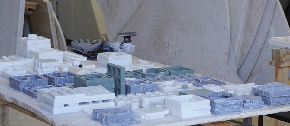 GREEK MARBLE OUZERI È UN'INSTALLAZIONE ESPERIENZIALE DI TREMEEATS CHE REINTERPRETA IL MARMO GRECO ATTRAVERSO LA CULTURA QUOTIDIANA DELL'OUZERI GRECO: UN LUOGO DOVE LE PERSONE SI RIUNISCONO ATTORNO A PICCOLI PIATTI, OUZO E CONVERSAZIONE. ANZICHÉ PRESENTARE IL MARMO COME UN MATERIALE DISTANTE O MONUMENTALE, L'INSTALLAZIONE LO PORTA IN UN AMBIENTE VIVO, PLASMATO DALL'OSPITALITÀ E DALLO SCAMBIO SOCIALE. ATTRAVERSO UN PAESAGGIO MODULARE DI SUPERFICI IN MARMO, LO SPAZIO INVITA I VISITATORI A VIVERE IL MARMO GRECO COME QUALCOSA DI IMMEDIATO E TATTILE: UN MATERIALE DA TOCCARE, ATTORNO AL QUALE RIUNIRSI E DA ABITARE.